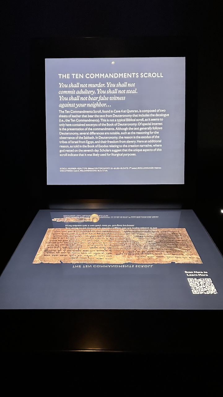 The current exhibit, “The Dead Sea Scrolls,” was one of the standout highlights of my visit. If you’re planning a trip between now and September 2, 2025, be sure to catch this rare and extraordinary display!