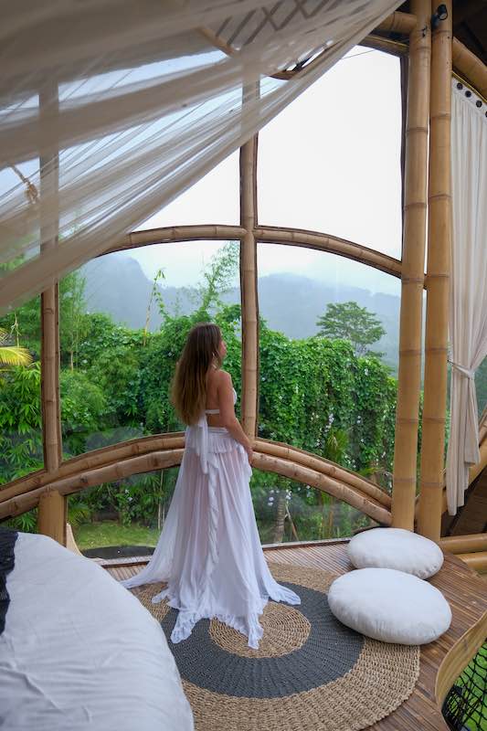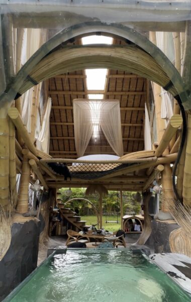 If you’re looking for a peaceful and unique getaway in Bali, Veluvana Bamboo House is an ideal place to stay! Nestled in the heart of Sidemen Valley, it is a peaceful haven, far from the crowd, where you can immerse yourself in the authentic Balinese way of life. Imagine yourself waking up to the soothing sounds of the jungle, surrounded by lush greenery, rice terraces, and beautiful views of Mt. Agung. I didn’t want to leave and I’m already dreaming of my next visit in the coming year.